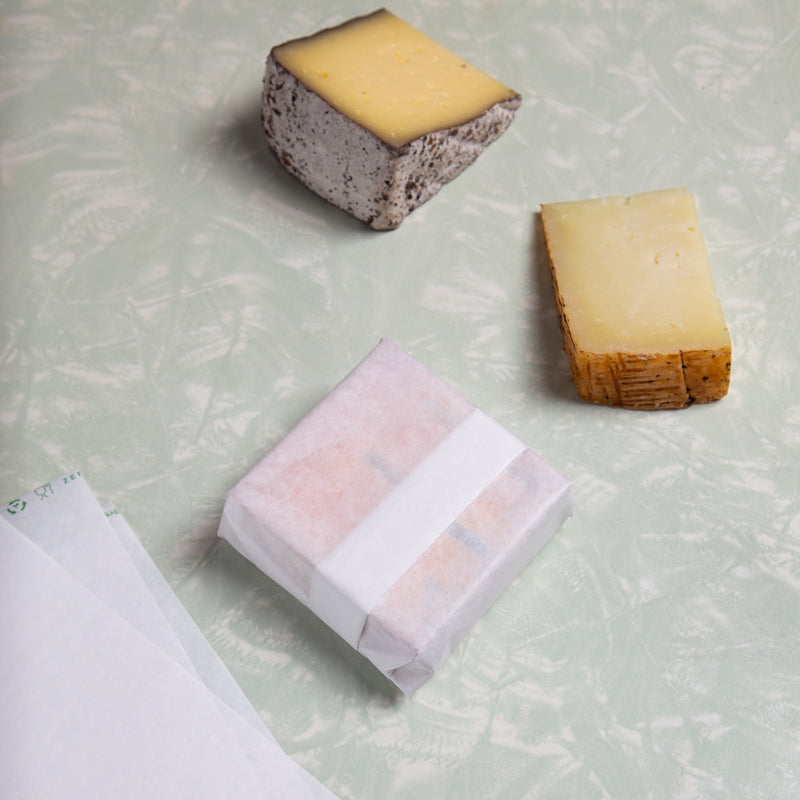 White Zero is compostable, biodegradable, and recyclable. This plastic-free material has a special cellulose-based coating that makes it greaseproof and porous to oxygen, making it an ideal packaging solution for aged cheese and charcuterie. Made of paper sourced from certified sustainable forests.