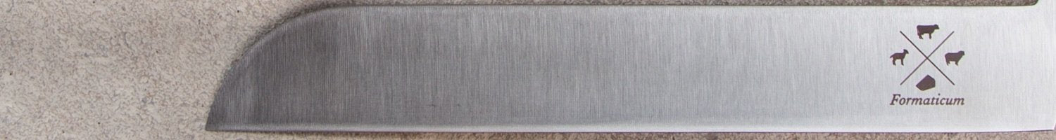 Formaticum professional cheese knives are the highest quality cheese tools. These knives are handmade in Italy and feature stainless steel blades and black polyethene handles. The offset handle design makes it easy to use, resulting in clean, professional cuts every time. This blade is designed as a general cheese knife and easily cuts all firm or hard cheeses. Formaticum professional cheese knives should always be hand-washed.