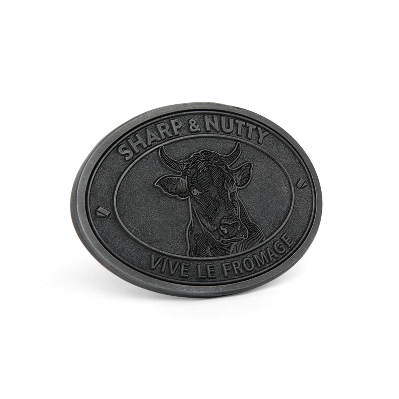 Our Sharp & Nutty belt buckle should be worn proudly to let everyone know how much you love cheese!
