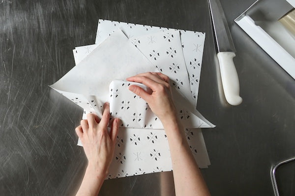 Each package contains fifteen 11" x 14" sheets of cheese paper and fifteen adhesive labels.