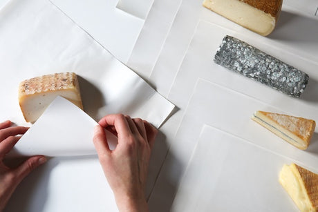 Our two-ply paper performs very important functions: it allows cheese to breathe and maintains the delicate balance of humidity required to prevent cheese from drying out. This paper is manufactured in France and used by the finest cheese purveyors to wrap and store cheese so it stays fresher longer. Composed of an ultra thin sheet of low density polyethylene laminated to pure fiber paper.