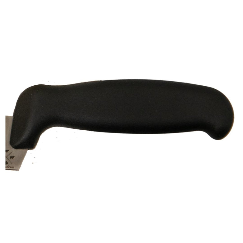 Formaticum professional cheese knives are the highest quality cheese tools. These knives are handmade in Italy and feature stainless steel blades and black polyethelene handles. The offset handle design makes it easy to use, resulting in clean, professional cuts every time. This blade is designed as a soft cheese knife and will easily cut all soft cheeses. The void on the blade helps prevent sticking. Use the forklet to serve. Formaticum professional cheese knives should always be hand-washed.